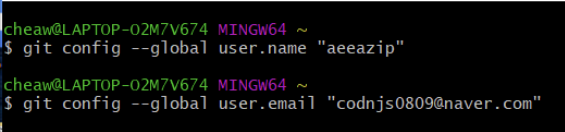 git config —-global user.email “유저 이메일”