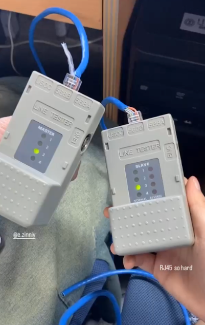 6. 테스터기 568B에 넣고 1,2,3,4에 해당하는 불이 잘 들어오는지 확인한다.