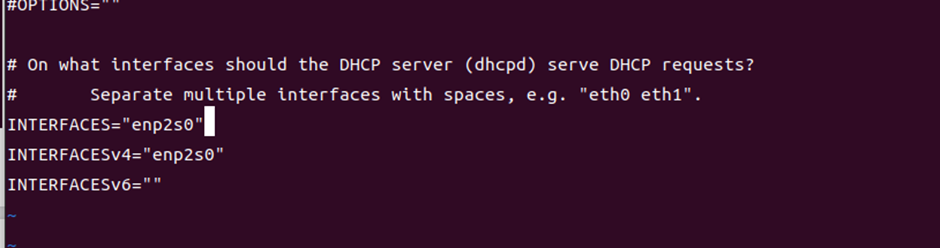 해당 파일은 /etc/default/isc-dhcp-server로 DHCP를 수행할 인터페이스를 지정하는 파일이다.