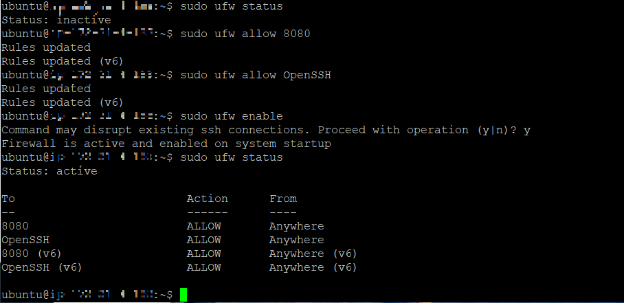 sudo ufw allow 8080
