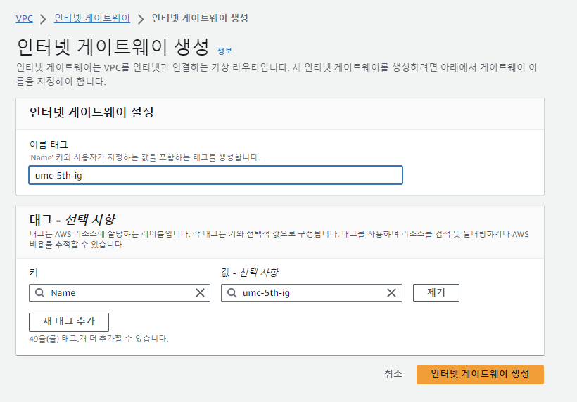 5. 인터넷 게이트웨이 생성