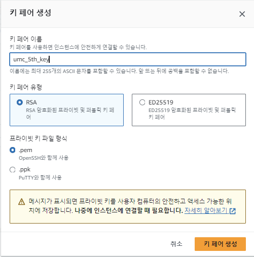 4. 키페어 선택 후 생성