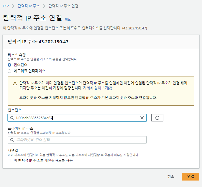 3. 탄력적 IP 주소 연결