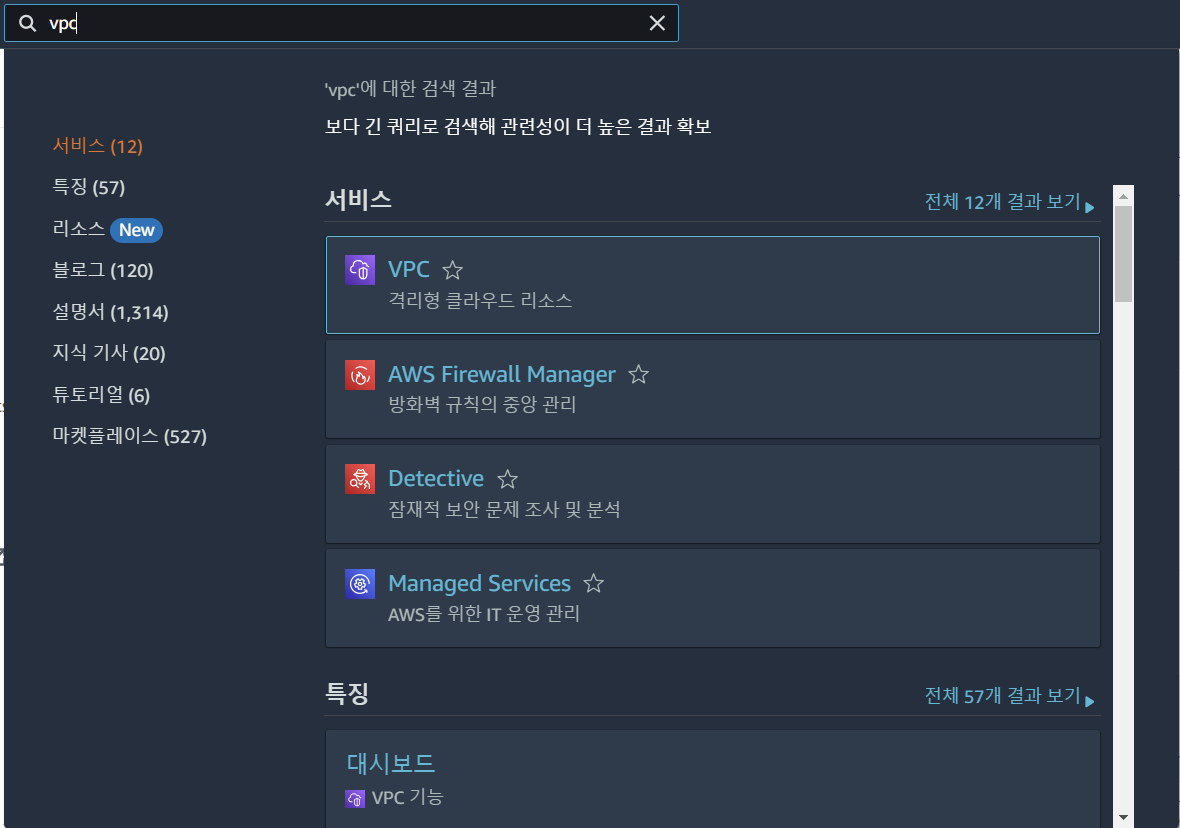1. AWS에서 로그인 후 VPC를 검색한다.