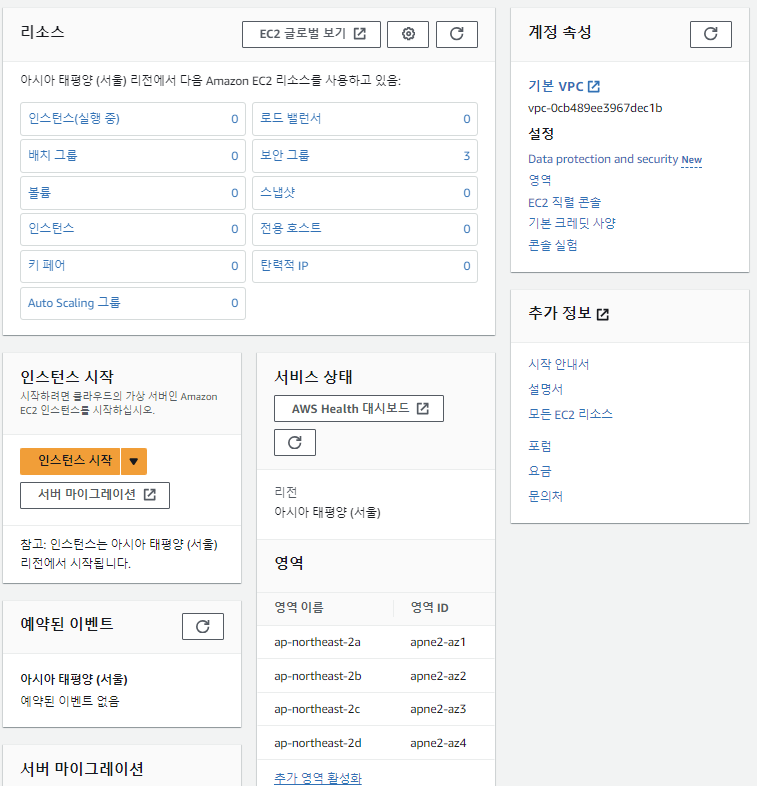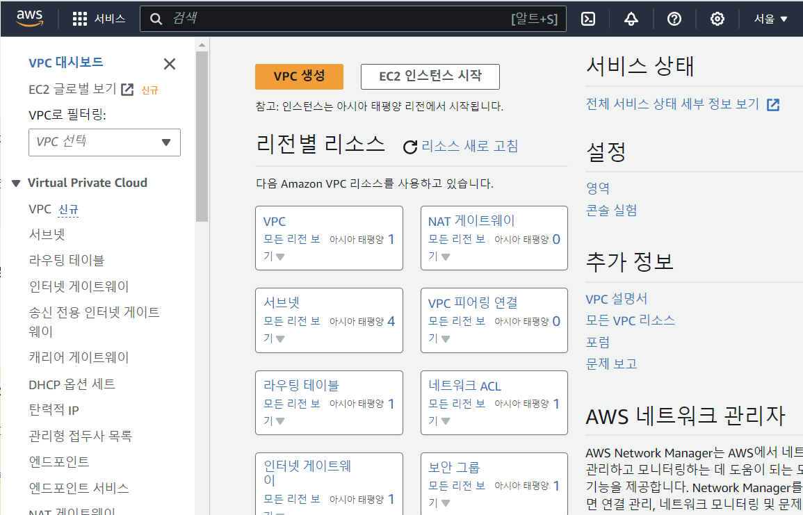 - 이때 리전은 반드시 서울로 해둘 것!!