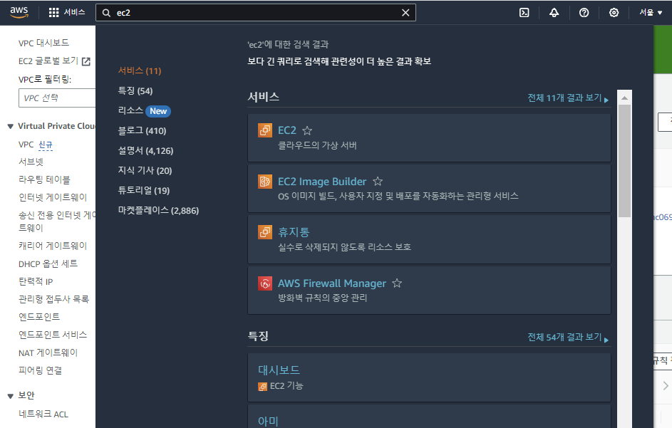 1. 서울 리전인 것을 확인하고 EC2 검색