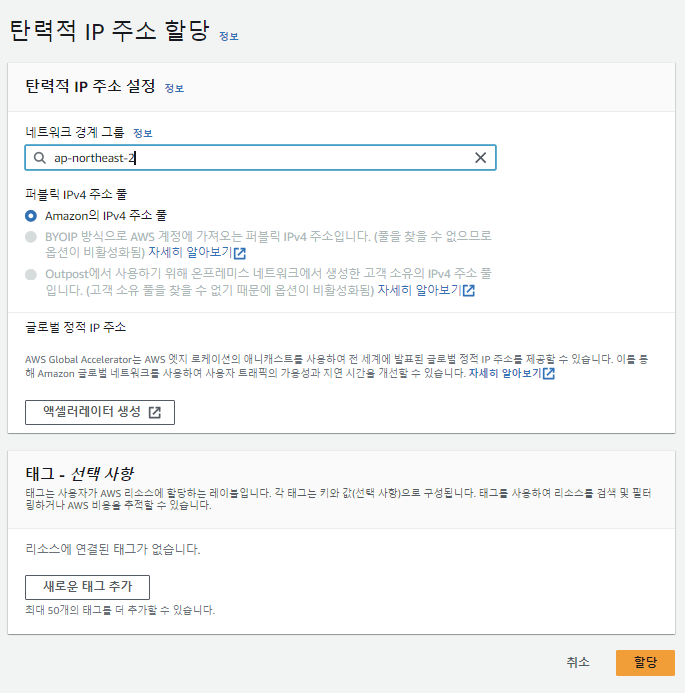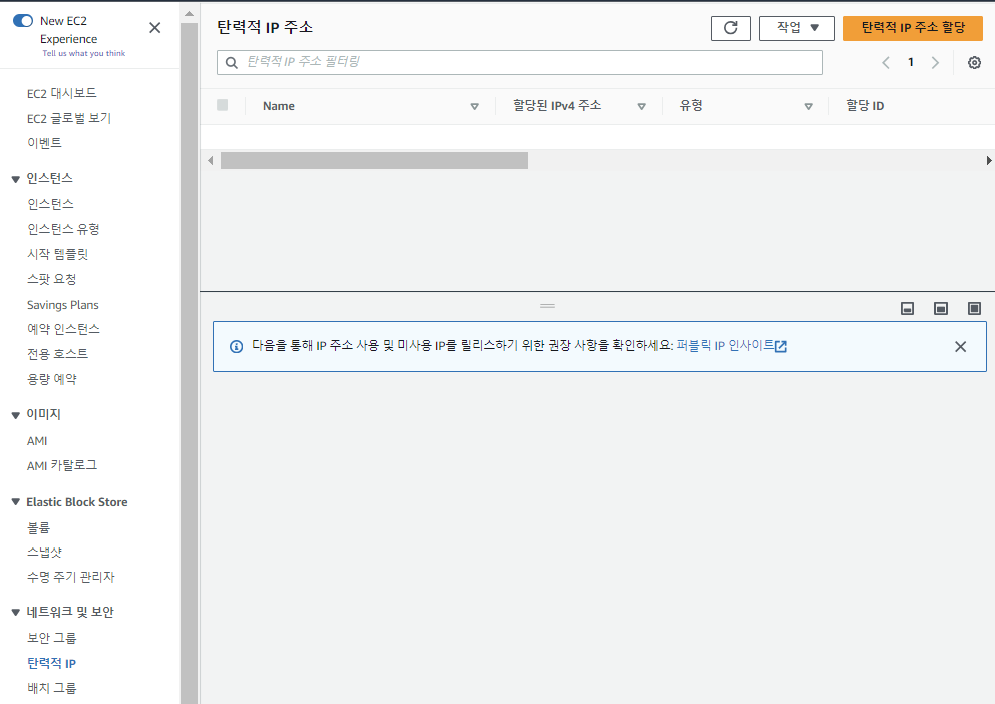1. 탄력적 IP 주소 할당 클릭