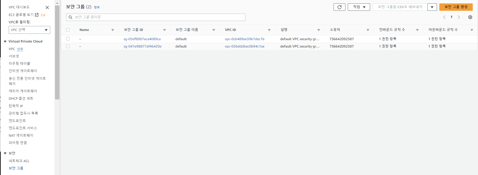 2. 보안 그룹 생성