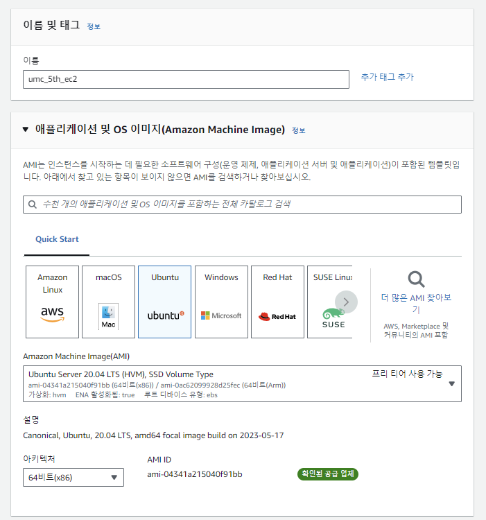 2. 이름을 정한 후 EC2 운영체제 선택