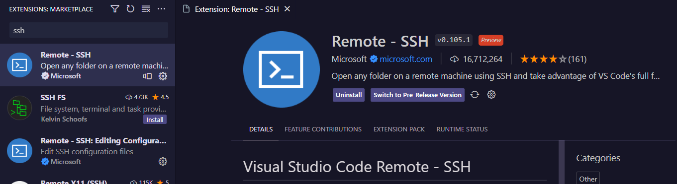 1. VS Code를 연 후 Extension에서 Remote - SSH를 다운로드
