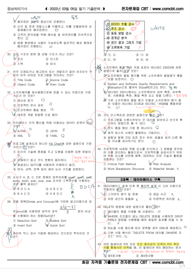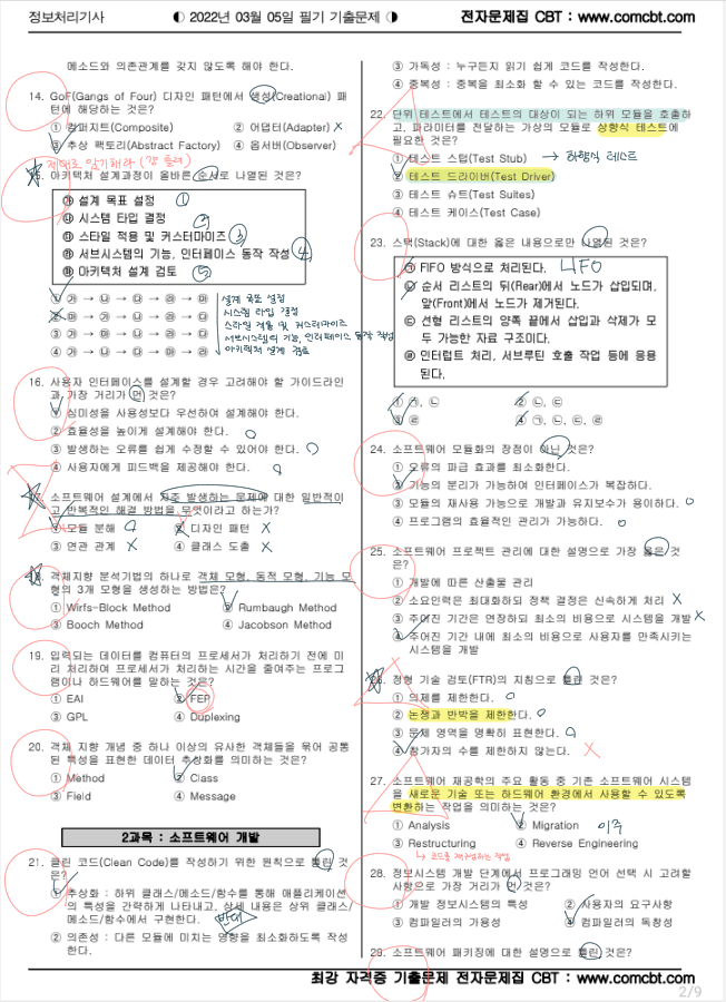 정처기 필기는 CBT로 변경되었기 때문에 22, 21년도 총 2개년의 기출을 풀었다. 시간 여유가 있다면 3개년, 여유가 없다면 2개년만 풀어봐도 좋을 것 같다.