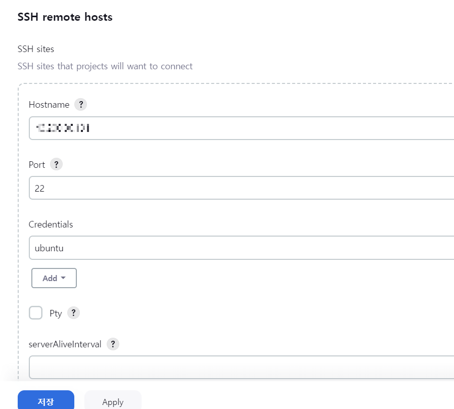 | Username | EC2 사용자 이름 (Ubuntu를 사용하는 경우 ubuntu라고 작성) |
