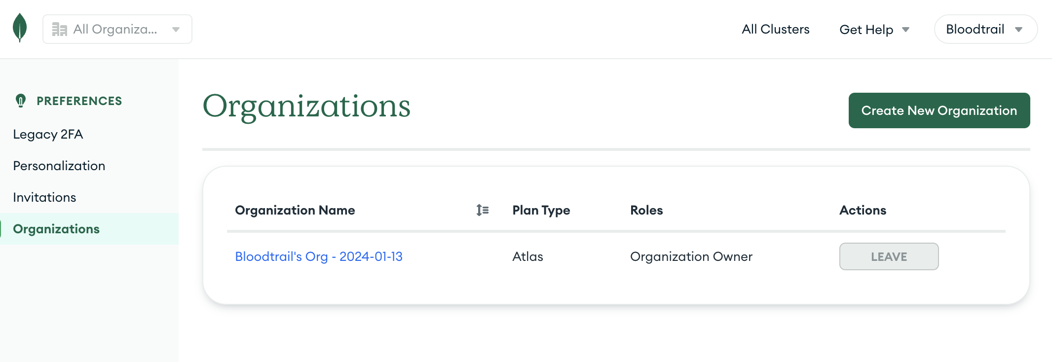 먼저 팀이 사용할 Organization을 생성하기 위해 Create New Organization을 클릭한다.