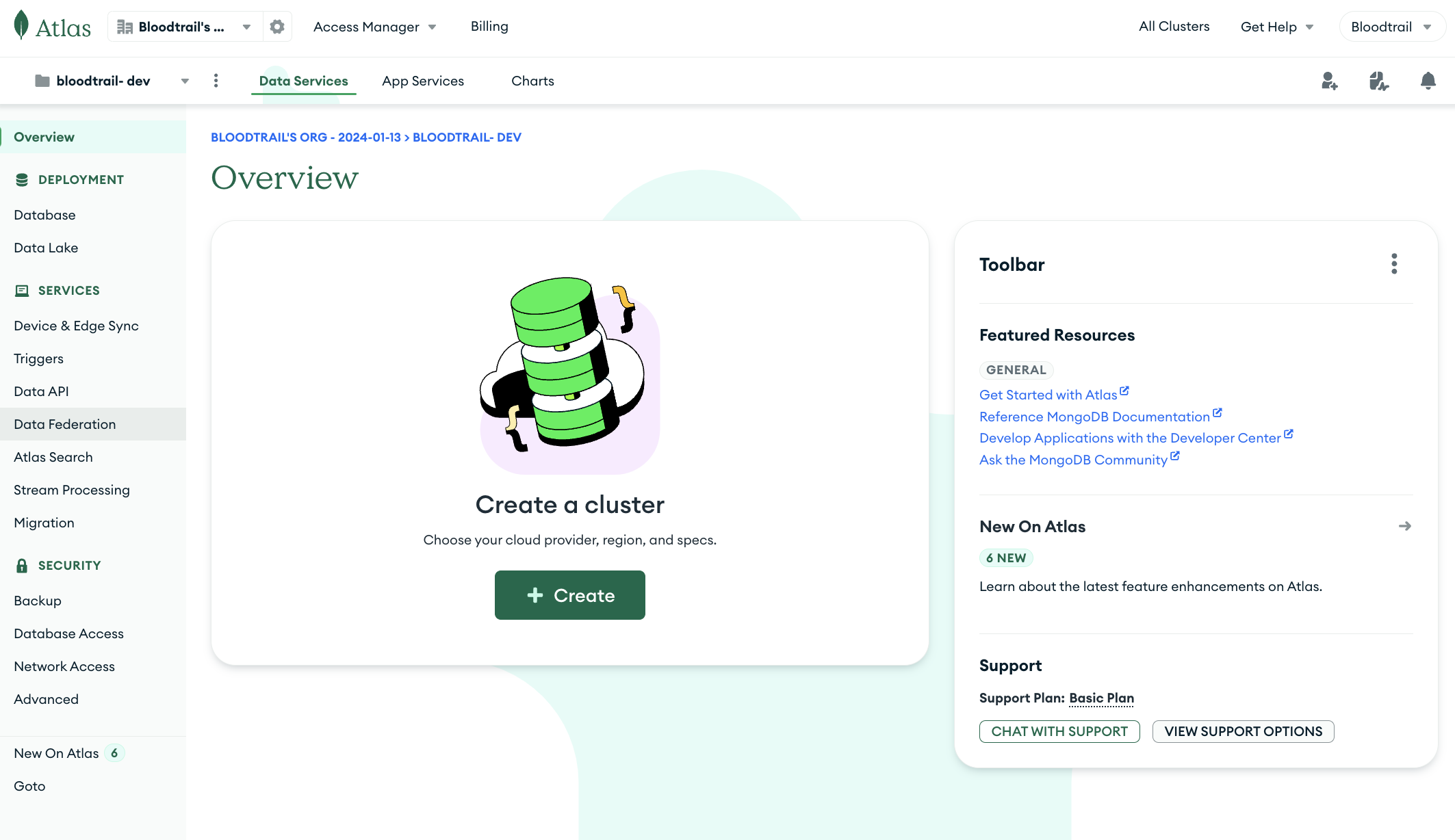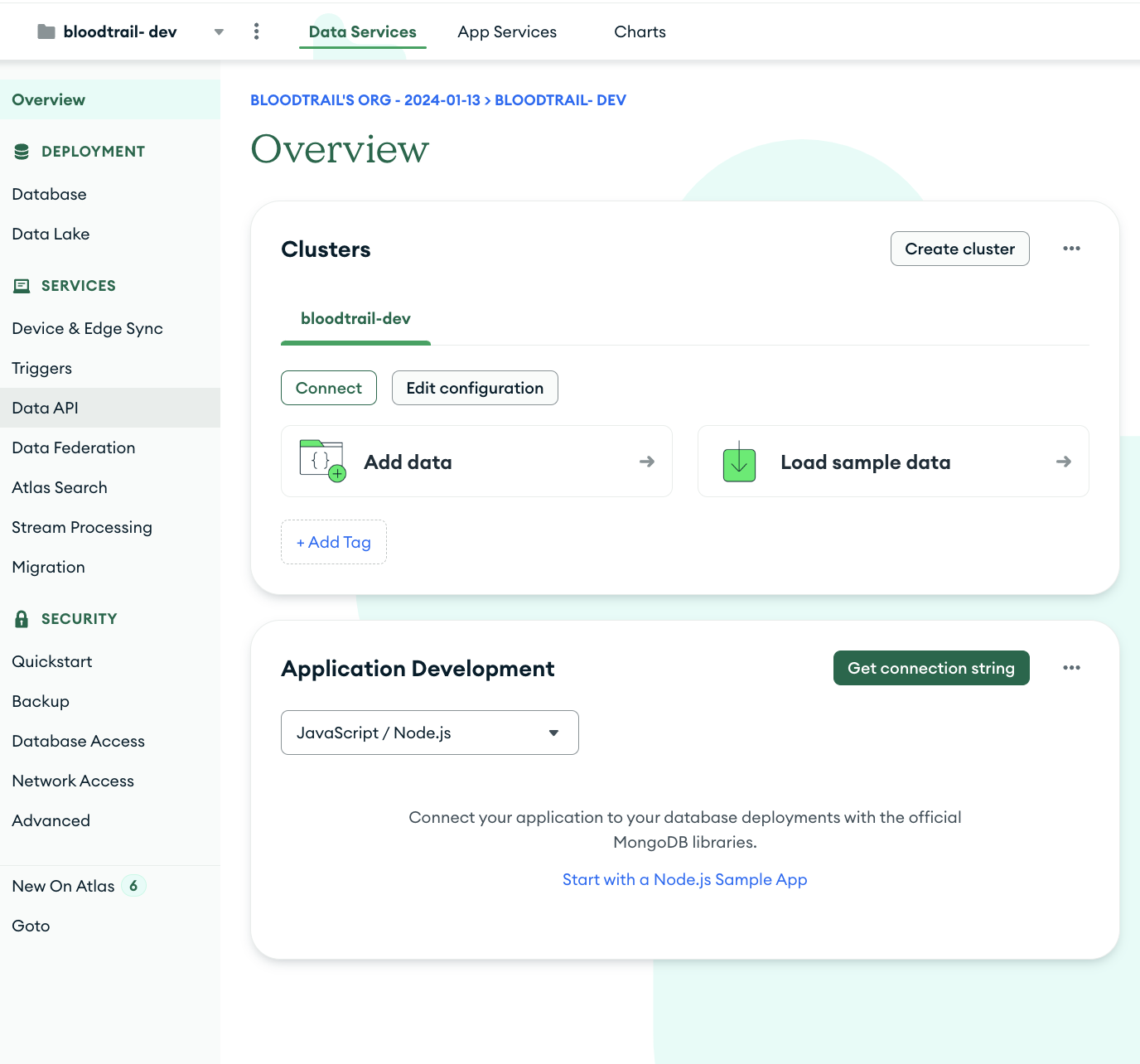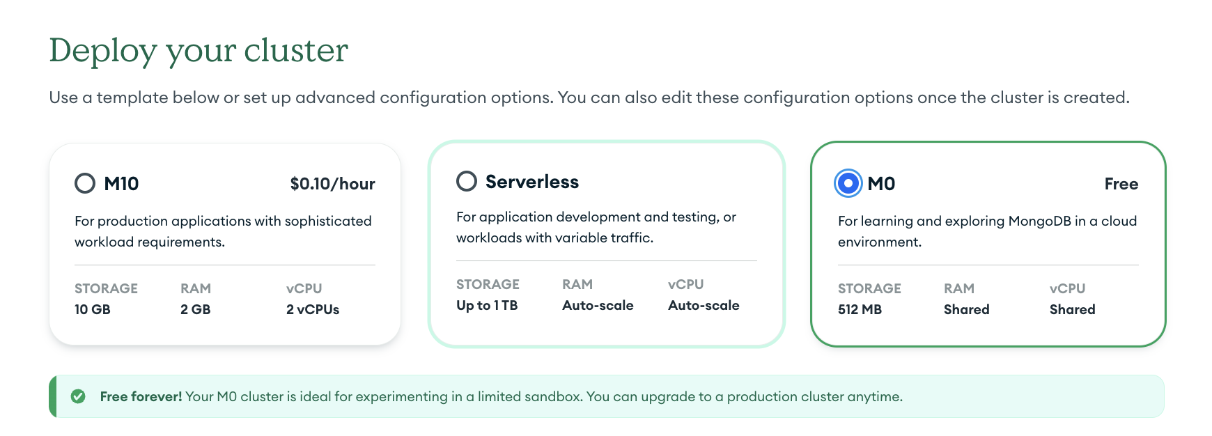 입력이 완료되었다면 옵션을 검토 후 Create Deployment를 선택해 Atlas Cluster를 생성한다.