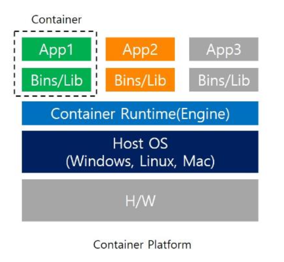 하나의 물리 서버에서 호스트 os 기능을 그대로 사용하면서 프로세스를 격리해 여러 개의 독립된 환경인 컨테이너를 만들고, 구동하고, 배포할 수 있도록 하는 기술이다.