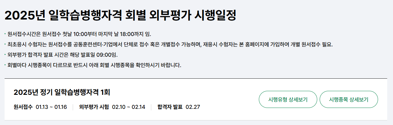 본인은 2025년 정기 과정평가형자격 1회에 응시했으며 시험일자는 2025년 02월 11일이고, 합격자 발표는 2025년 02월 27일에 공개될 예정이다.