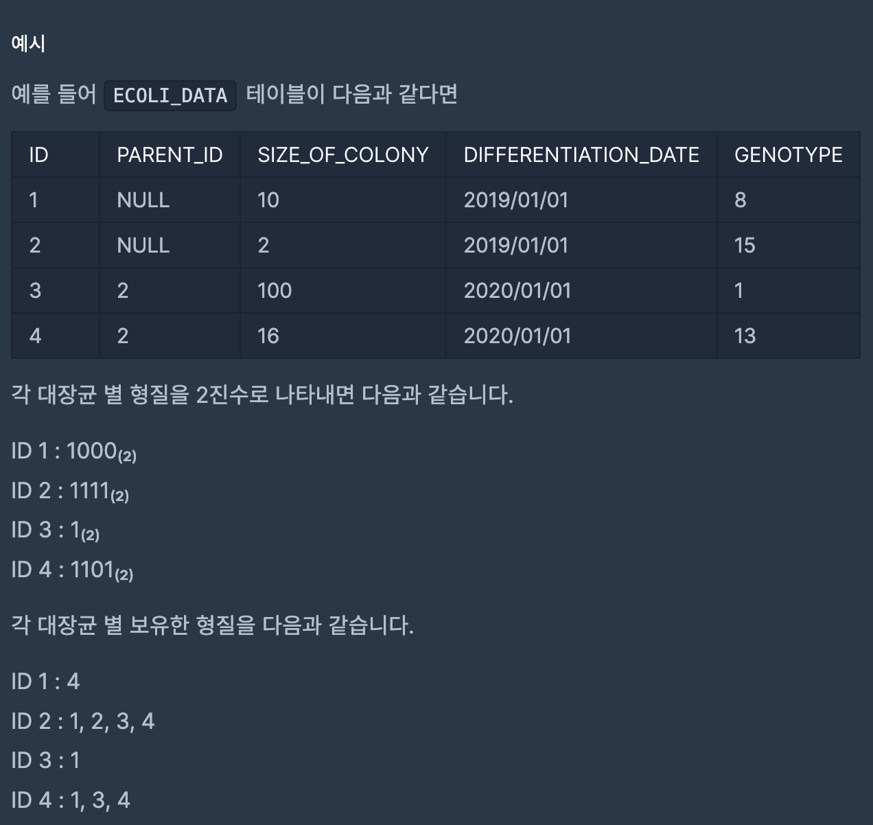 | [SQL] 멸종위기의 대장균 찾기 문제 풀이 (0) | 2025.03.07 |