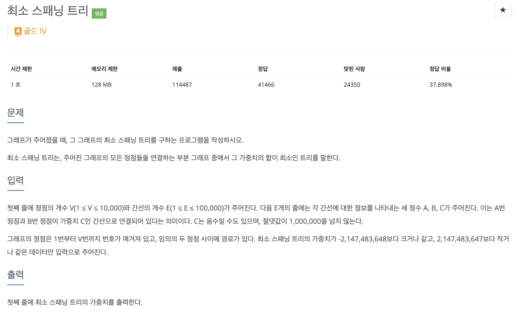 최소 스패닝 트리의 가중치를 구하는 문제이다.